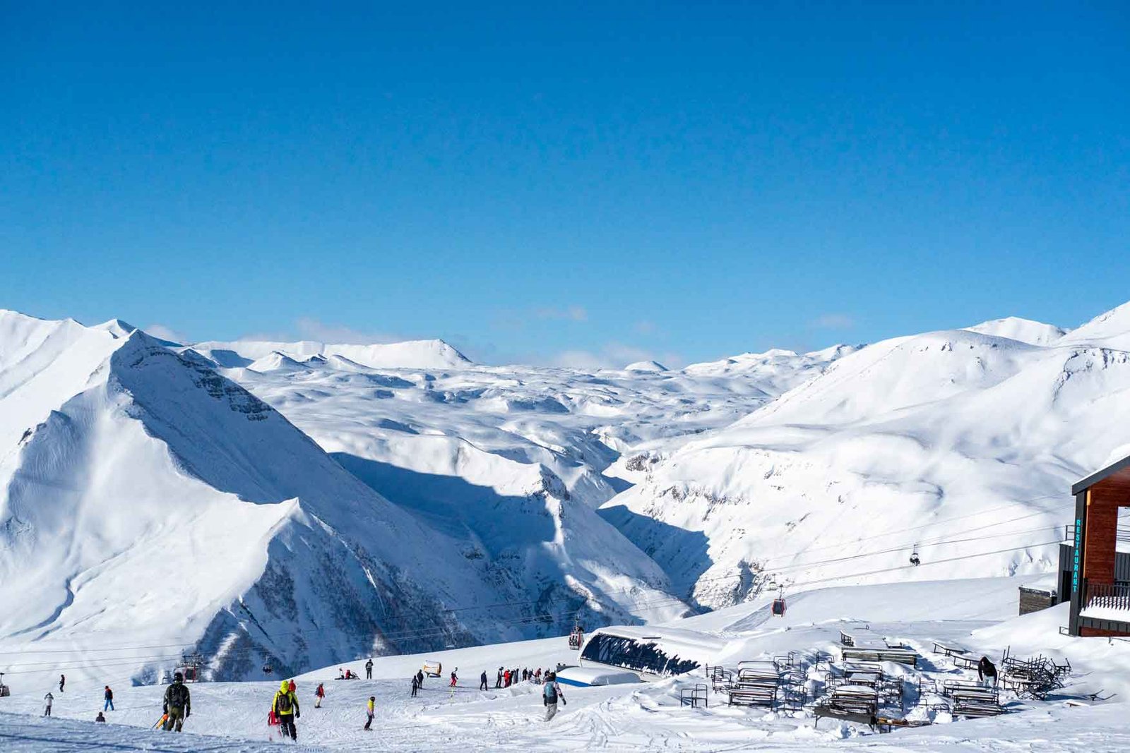 Гудаури привлекает разнообразием маршрутов и уникальной атмосферой. Курорт расположен в сердце Кавказских гор, недалеко от Казбека, и предлагает катание в альпийской зоне, лесных массивах и широких полях. Инфраструктура радует: комфортабельные отели у подъемников, уютные кафе с грузинской кухней и оживленные бары для вечернего отдыха. Это место, где можно сочетать экстремальное катание с удобствами цивилизации.