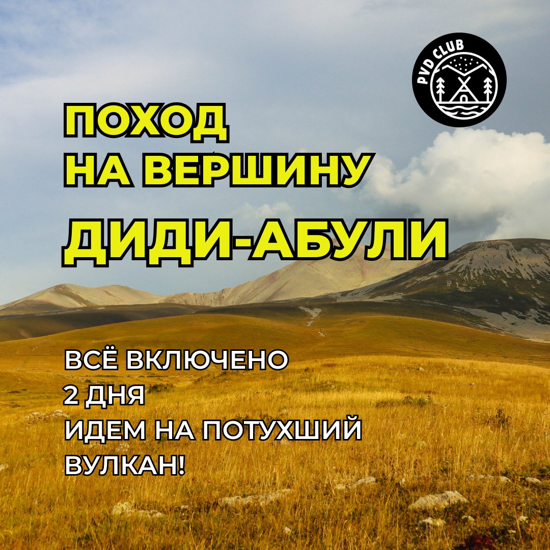 Поход выходного дня с восхождением на вершину потухшего вулкана Диди-Абули и проживанием палатках. Маршрут до 13 км в день с плавным набором высоты в 900 м в первый день и активным штурмом вершины еще на 400 м на второй день.