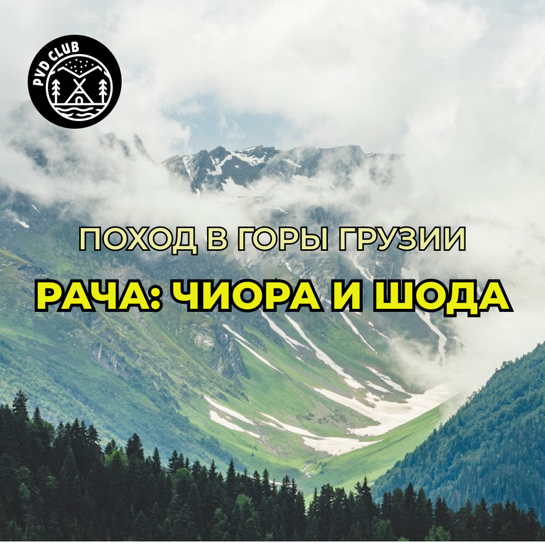 Поход средней сложности в районе Рача вдоль царь-горы Шода (3610 м), а также с треккингом у горы Чиора с видами на Кавказский хребет.